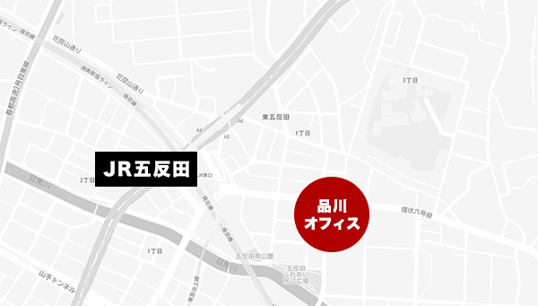 品川オフィス JR・東急池上線・都営浅草線 五反田駅より徒歩3分~4分ほどになります。