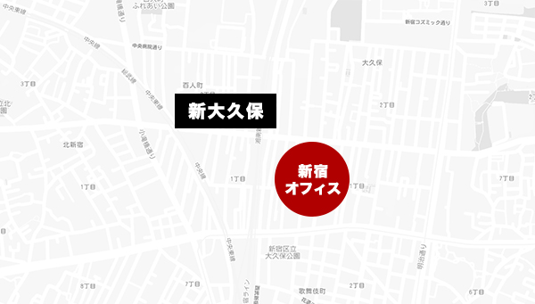新宿オフィス JR新大久保駅より徒歩3分~4分ほどになります。