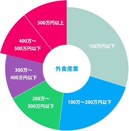 どんなにいい働きをしても、その働きに見合った報酬を得られる業界は限られています。 日本でもっとも多くの就業者が働く外食産業では400万円以上の年収を得ている割合は約15%です。