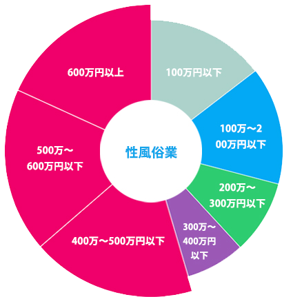 フーゾク業では約63%以上の就業者が 400万円以上の年収を得ています。